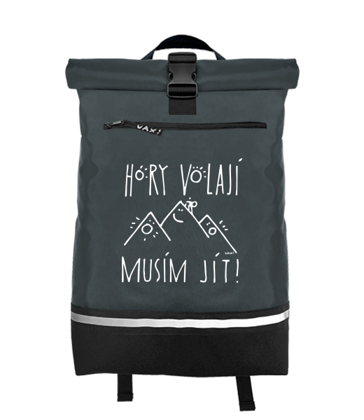 Original backpack ROLL-TOP LARGE with design 1233 HORY VOLAJÍ MUSÍM JÍT in color GREY INK
