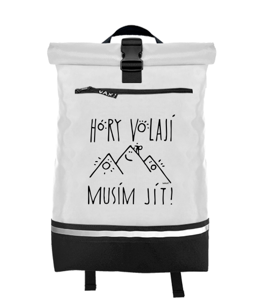 Original backpack ROLL-TOP LARGE with design 1233 HORY VOLAJÍ MUSÍM JÍT in color WHITE