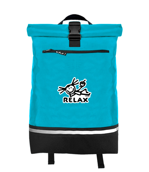 Original backpack ROLL-TOP LARGE with design 1256 RELAX GIRL in color BLUE ATOLL