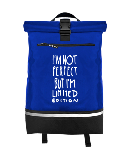 Original backpack ROLL-TOP LARGE with design 1289 IM NOT PERFECT in color CLASSIC BLUE