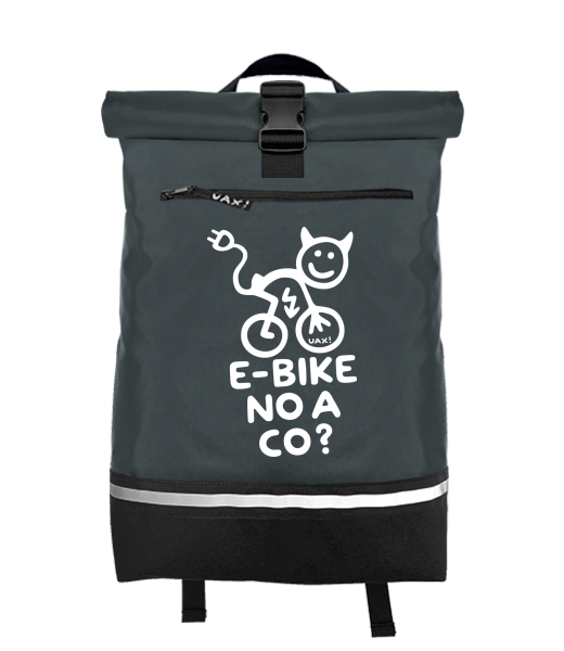 We make sustainable UAX clothing! - hand sewn in the Czech Republic uaxAccessories uaxAll productsPouches and backpacksBACKPACK ROLL-TOP LARGEdesign 1291 - E-BIKE NO A CO?GREY INK