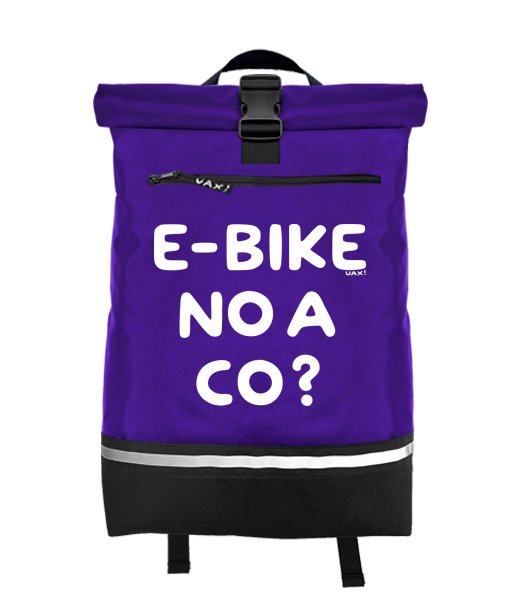 Original backpack ROLL-TOP LARGE with design 1292 E-BIKE NO A CO? in color VIOLET