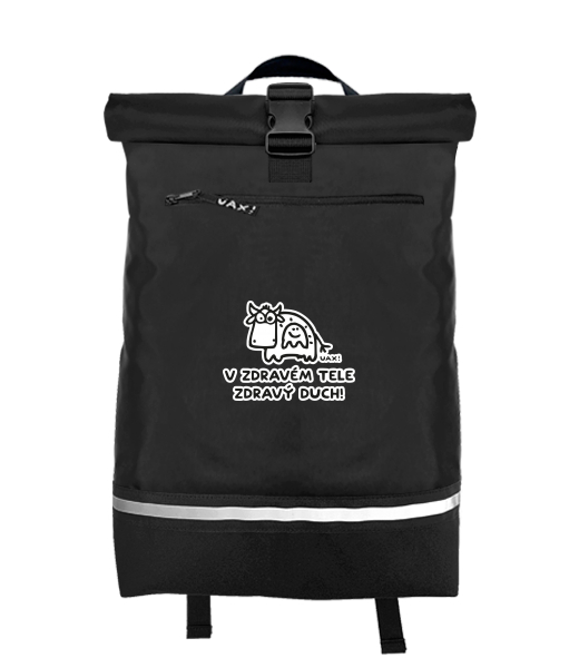 Original backpack ROLL-TOP LARGE with design 1309 V ZDRAVÉM TELE ZDRAVÝ DUCH in color BLACK
