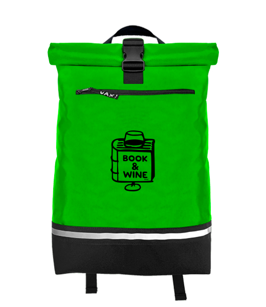 Original backpack ROLL-TOP LARGE with design 1322 BOOK AND WINE in color BRIGHT GREEN