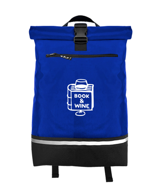 Original backpack ROLL-TOP LARGE with design 1322 BOOK AND WINE in color CLASSIC BLUE