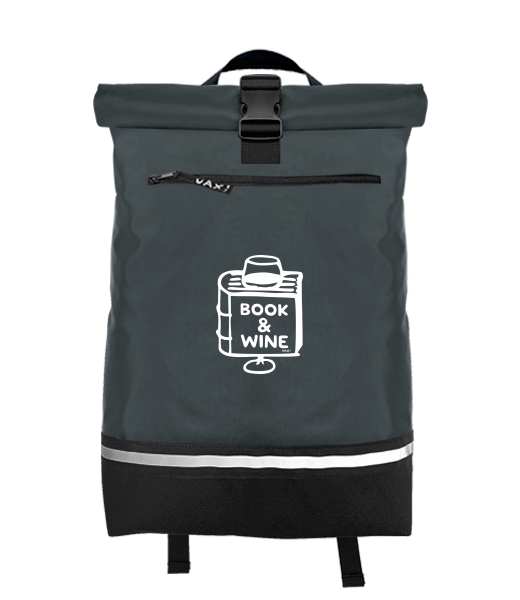 Original backpack ROLL-TOP LARGE with design 1322 BOOK AND WINE in color GREY INK