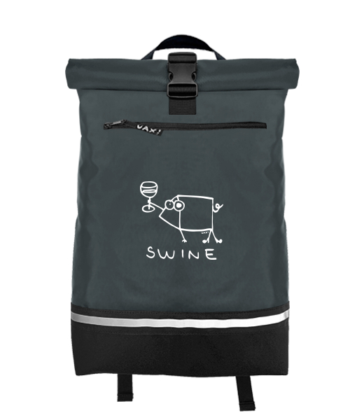 Original backpack ROLL-TOP LARGE with design 1323 SWINE in color GREY INK