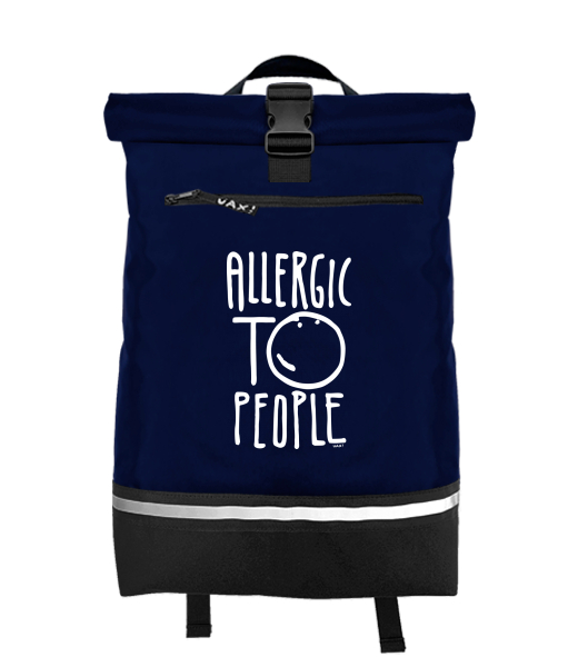 Original backpack ROLL-TOP LARGE with design 1329 ALLERGIC TO PEOPLE in color MIDNIGHT BLUE