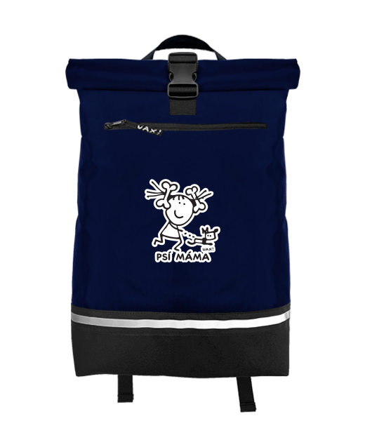 Original backpack ROLL-TOP LARGE with design 1330 PSÍ MÁMA in color MIDNIGHT BLUE