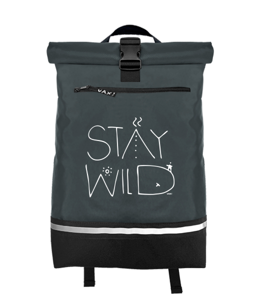 Original backpack ROLL-TOP LARGE with design 1337 STAY WILD in color GREY INK