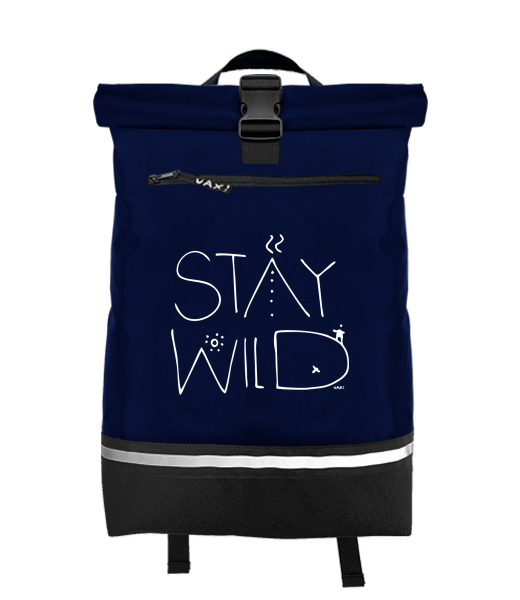 Original backpack ROLL-TOP LARGE with design 1337 STAY WILD in color MIDNIGHT BLUE