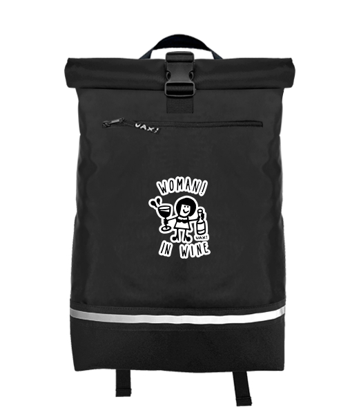 Original backpack ROLL-TOP LARGE with design 1347 WOMAN IN WINE 2 in color BLACK