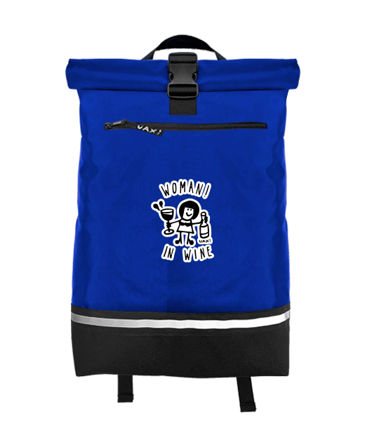 Original backpack ROLL-TOP LARGE with design 1347 WOMAN IN WINE 2 in color CLASSIC BLUE