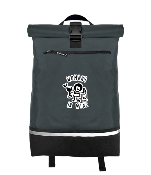 Original backpack ROLL-TOP LARGE with design 1347 WOMAN IN WINE 2 in color GREY INK