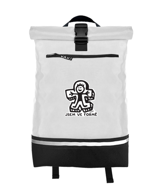 Original backpack ROLL-TOP LARGE with design 1351 JSEM VE FORMĚ in color WHITE