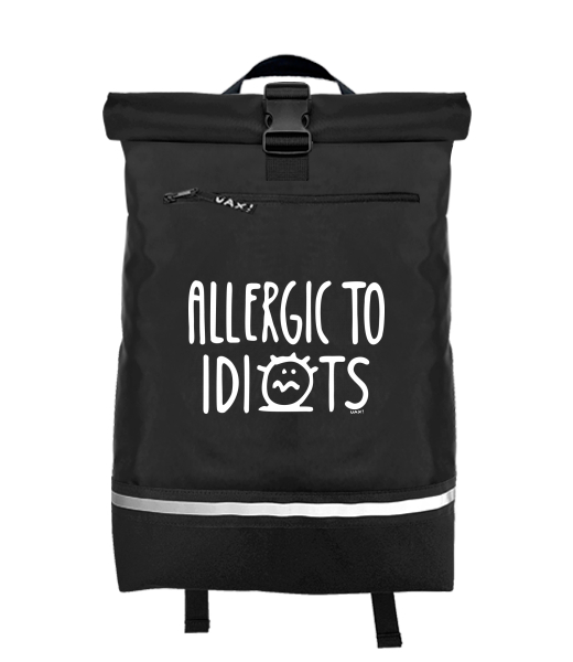 Original backpack ROLL-TOP LARGE with design 1354 ALLERGIC TO IDIOTS in color BLACK