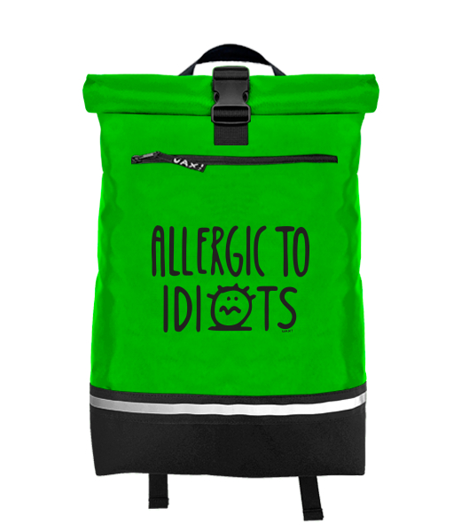 Original backpack ROLL-TOP LARGE with design 1354 ALLERGIC TO IDIOTS in color BRIGHT GREEN