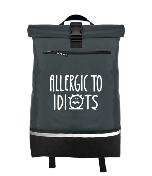 Original backpack ROLL-TOP LARGE with design 1354 ALLERGIC TO IDIOTS in color GREY INK