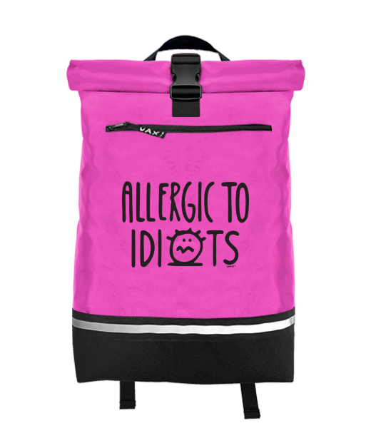 Original backpack ROLL-TOP LARGE with design 1354 ALLERGIC TO IDIOTS in color INDIAN LILA