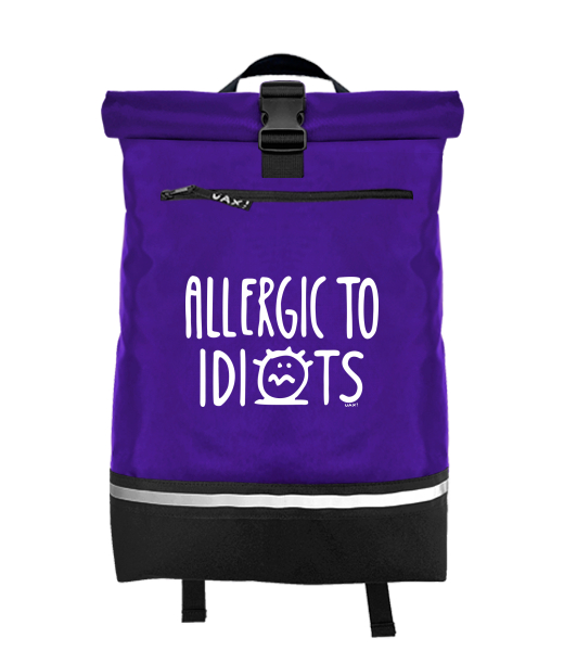 Original backpack ROLL-TOP LARGE with design 1354 ALLERGIC TO IDIOTS in color VIOLET