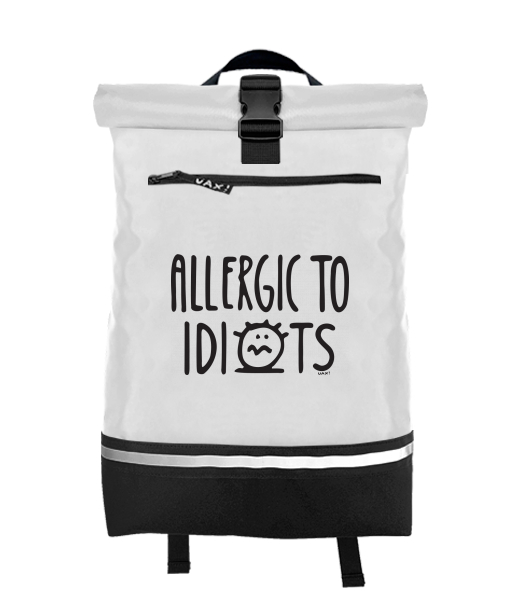 Original backpack ROLL-TOP LARGE with design 1354 ALLERGIC TO IDIOTS in color WHITE