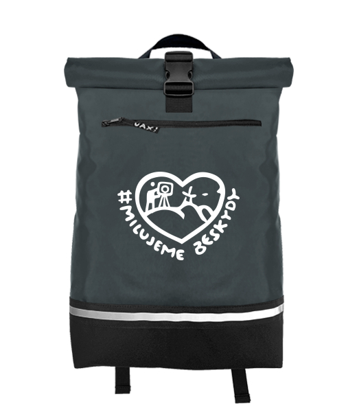 We make sustainable UAX clothing! - hand sewn in the Czech Republic uaxAccessories uaxAll productsPouches and backpacksBACKPACK ROLL-TOP LARGEdesign 1356 - MILUJEME BESKYDY 2GREY INK