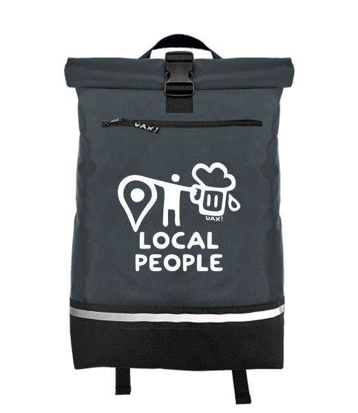 Original backpack ROLL-TOP LARGE with design 1360 LOCAL PEOPLE BIG in color GREY INK