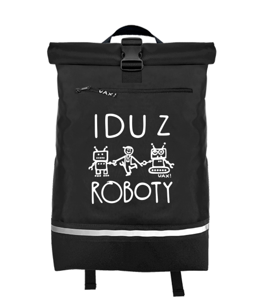 Original backpack ROLL-TOP LARGE with design 1377 IDU Z ROBOTY 2 in color BLACK