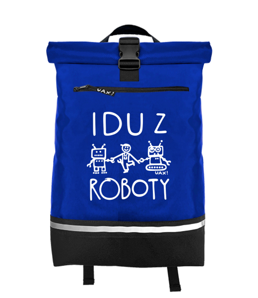 Original backpack ROLL-TOP LARGE with design 1377 IDU Z ROBOTY 2 in color CLASSIC BLUE