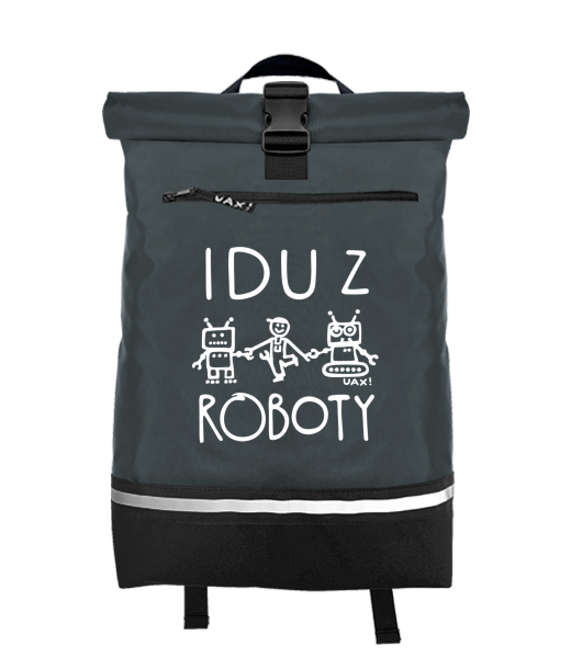 Original backpack ROLL-TOP LARGE with design 1377 IDU Z ROBOTY 2 in color GREY INK
