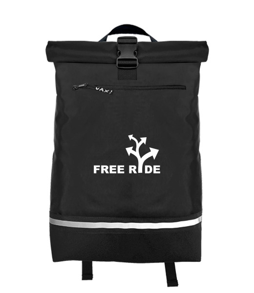 Original backpack ROLL-TOP LARGE with design 344 FREE RIDE in color BLACK