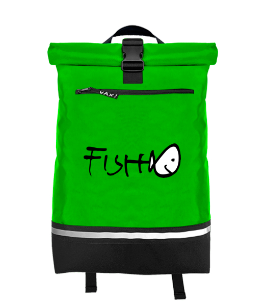 Original backpack ROLL-TOP LARGE with design 357 FISH in color BRIGHT GREEN