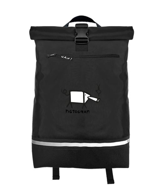 Original backpack ROLL-TOP LARGE with design 367 PIGTOGRAM in color BLACK