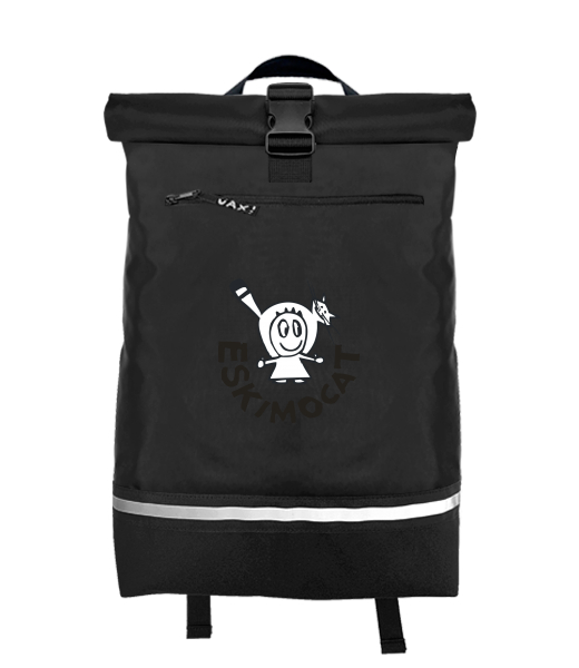 Original backpack ROLL-TOP LARGE with design 375 ESKIMOCAT in color BLACK