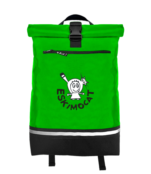 Original backpack ROLL-TOP LARGE with design 375 ESKIMOCAT in color BRIGHT GREEN