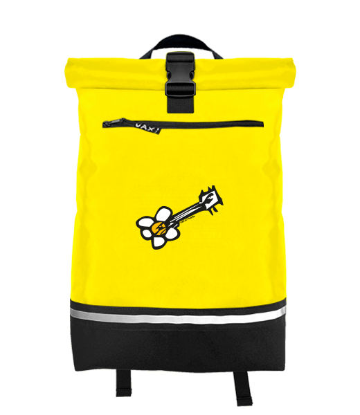 Original backpack ROLL-TOP LARGE. The upper part of the backpack can be closed with Velcro. It can be rolled up and switched on with a clip. For wearing, there is an ear and adjustable straps with safety reflective elements. The roll-top backpack has an outer pocket that can be closed with a zipper and an inside pocket that is not closable. A safety reflective tape is placed on the front of the roll-top large backpack. Mix & Match - Choose from many original prints and combine colorful colors. Color configurator! = mix your own color combination!