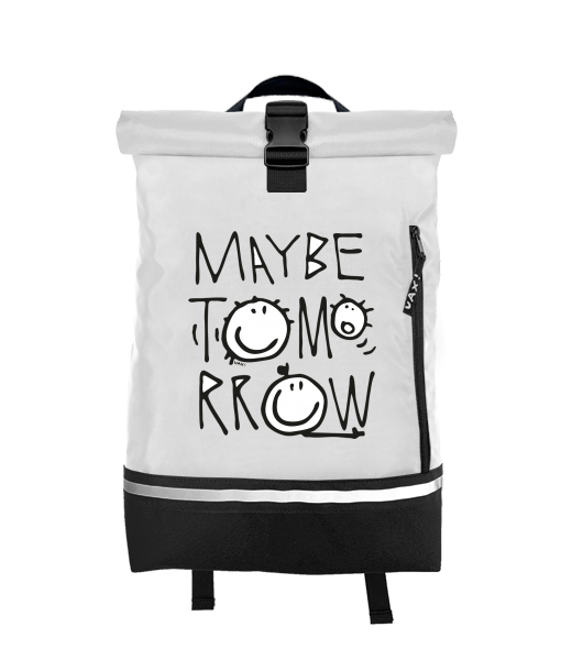 Original backpack ROLL-TOP SMALL with design 1001 MAYBE TOMORROW in color WHITE