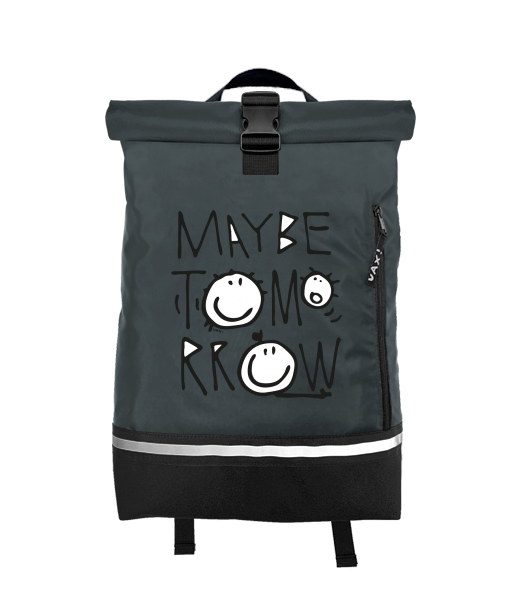 Original backpack ROLL-TOP SMALL with design 1001 MAYBE TOMORROW in color GREY INK
