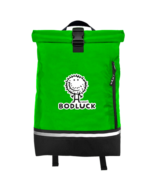 Original backpack ROLL-TOP SMALL with design 1002 BODLUCK in color BRIGHT GREEN
