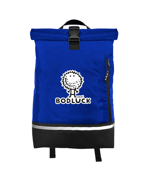 Original backpack ROLL-TOP SMALL with design 1002 BODLUCK in color CLASSIC BLUE