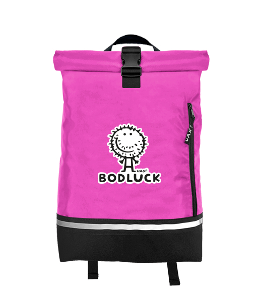 Original backpack ROLL-TOP SMALL with design 1002 BODLUCK in color INDIAN LILA