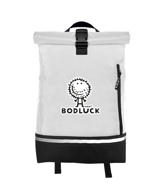 Original backpack ROLL-TOP SMALL with design 1002 BODLUCK in color WHITE