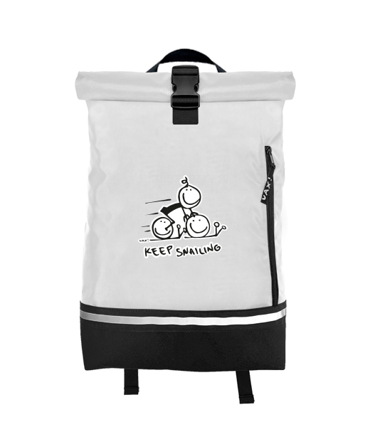 Original backpack ROLL-TOP SMALL with design 1017 KEEP SNAILING in color WHITE