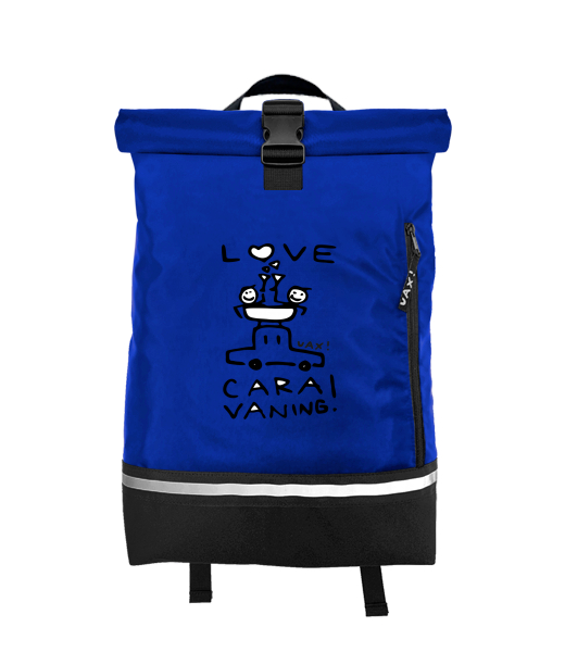 Original backpack ROLL-TOP SMALL with design 1026 LOVE CARA VANING in color CLASSIC BLUE