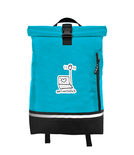 Original backpack ROLL-TOP SMALL with design 1040 OPTIMYŠMUS in color BLUE ATOLL