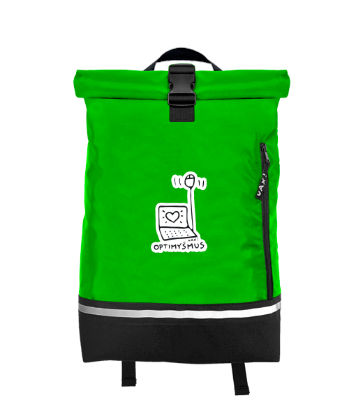 Original backpack ROLL-TOP SMALL with design 1040 OPTIMYŠMUS in color BRIGHT GREEN