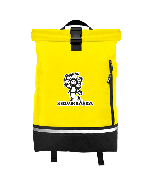 Original backpack ROLL-TOP SMALL. The upper part of the backpack can be closed with Velcro. It can be rolled up and switched on with a clip. For wearing, there is an ear and adjustable straps with safety reflective elements. The roll-top backpack has an outer pocket that can be closed with a zipper and an inside pocket that is not closable. A safety reflective tape is placed on the front of the roll-top small backpack. Mix & Match - Choose from many original prints and combine colorful colors. Color configurator! = mix your own color combination!