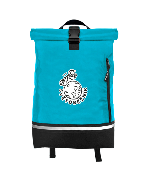Original backpack ROLL-TOP SMALL with design 1047 SVĚTOBĚŽNÍK in color BLUE ATOLL