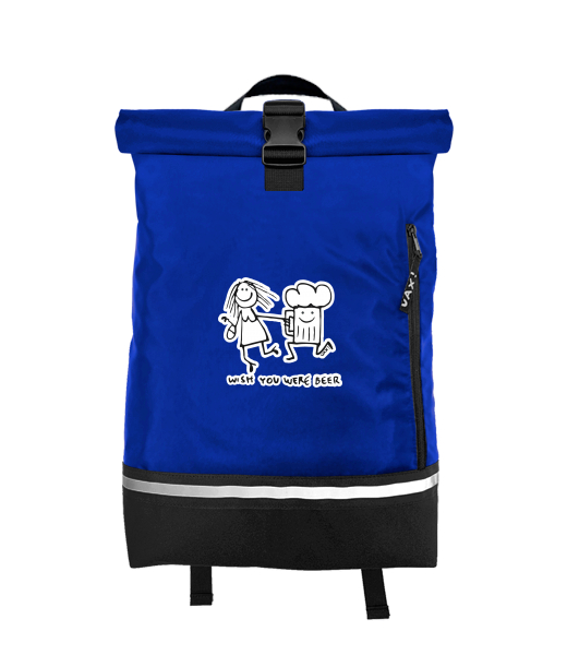 Original backpack ROLL-TOP SMALL with design 1049 WISH YOU WERE BEER in color CLASSIC BLUE