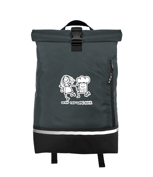 Original backpack ROLL-TOP SMALL with design 1049 WISH YOU WERE BEER in color GREY INK